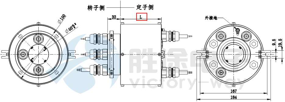 TEX050型防爆滑环,具有内径50mm,外径150mm,长度根据通路数及电流大小确定,该滑环同时满足爆炸性气体环境和爆炸性粉尘环境.